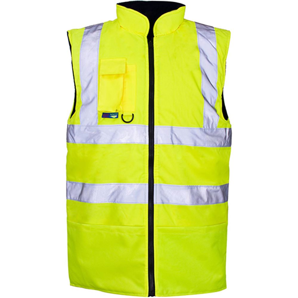 Supertouch Yellow Fleece Lined Hi Vis Reversible Bodywarmer