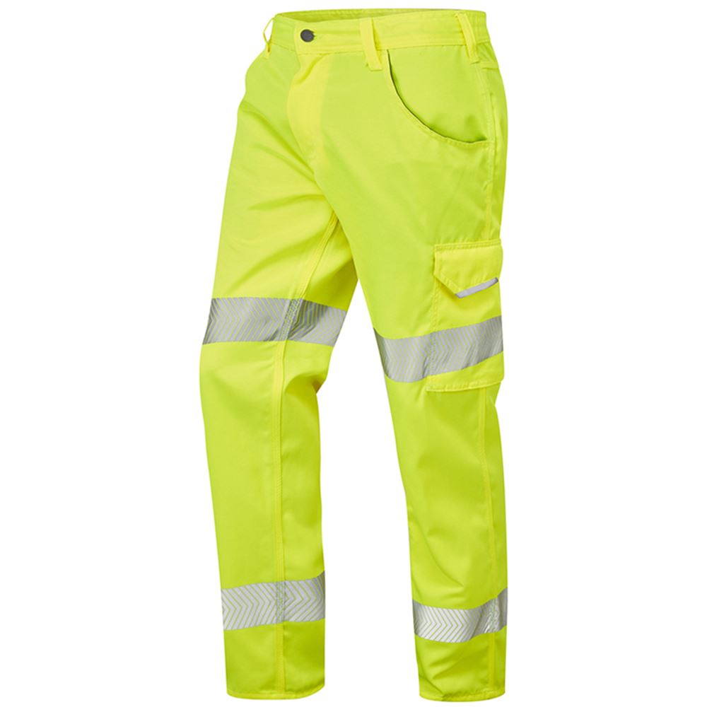 Leo Workwear Yelland Yellow Lightweight Polycotton Hi Vis Cargo Trouser