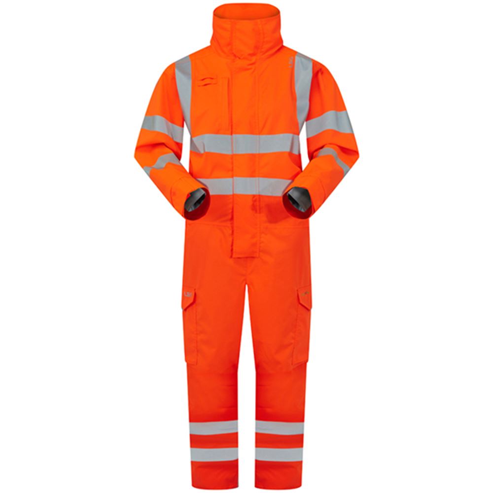 Leo Workwear Watertown Orange EcoViz 10KX Waterproof Breathable Stretch Hi Vis Coverall