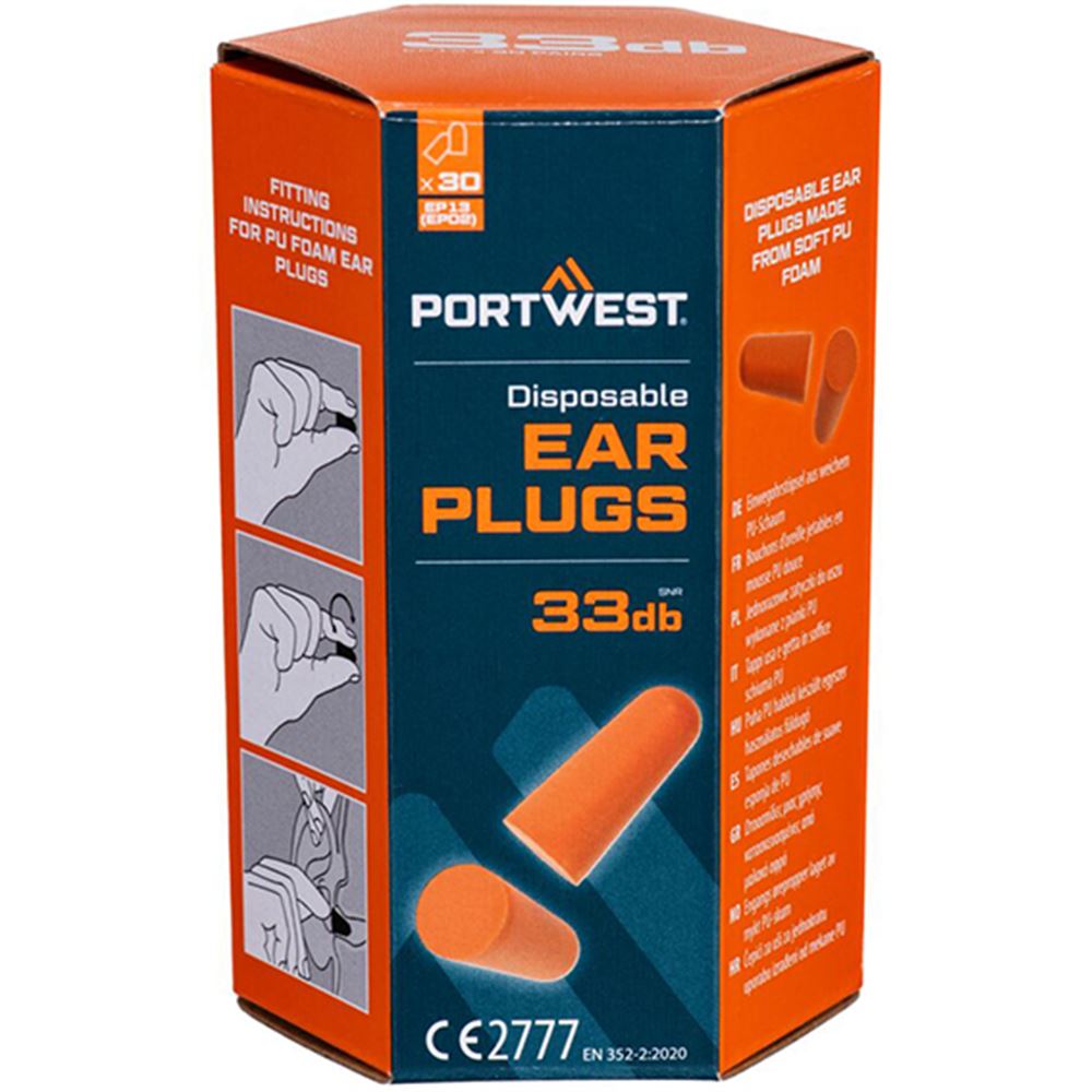 Portwest EP13 PU Foam Uncorded Ear Plugs (30 Pairs) - SNR 33dB