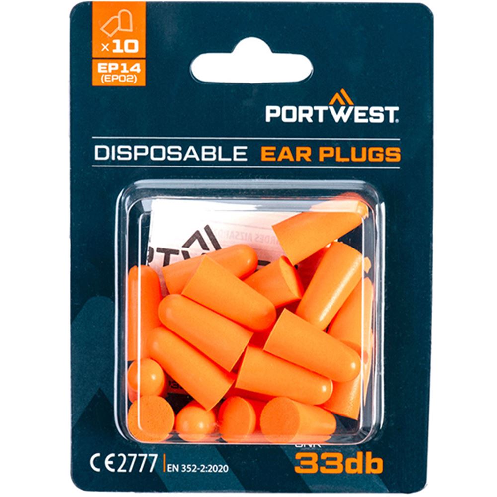 Portwest EP14 PU Foam Uncorded Ear Plugs (10 Pairs) - SNR 33dB