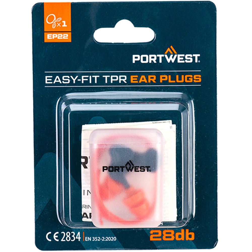 Portwest EP22 Easy Fit TPR Corded Ear Plugs in Storage Container (1 Pair) - SNR 28dB
