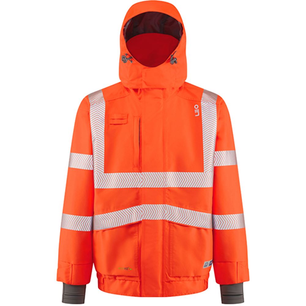 Leo Workwear Dartmoor Orange EcoViz 15K Mesh Lined Waterproof Breathable Hi Vis Bomber Jacket