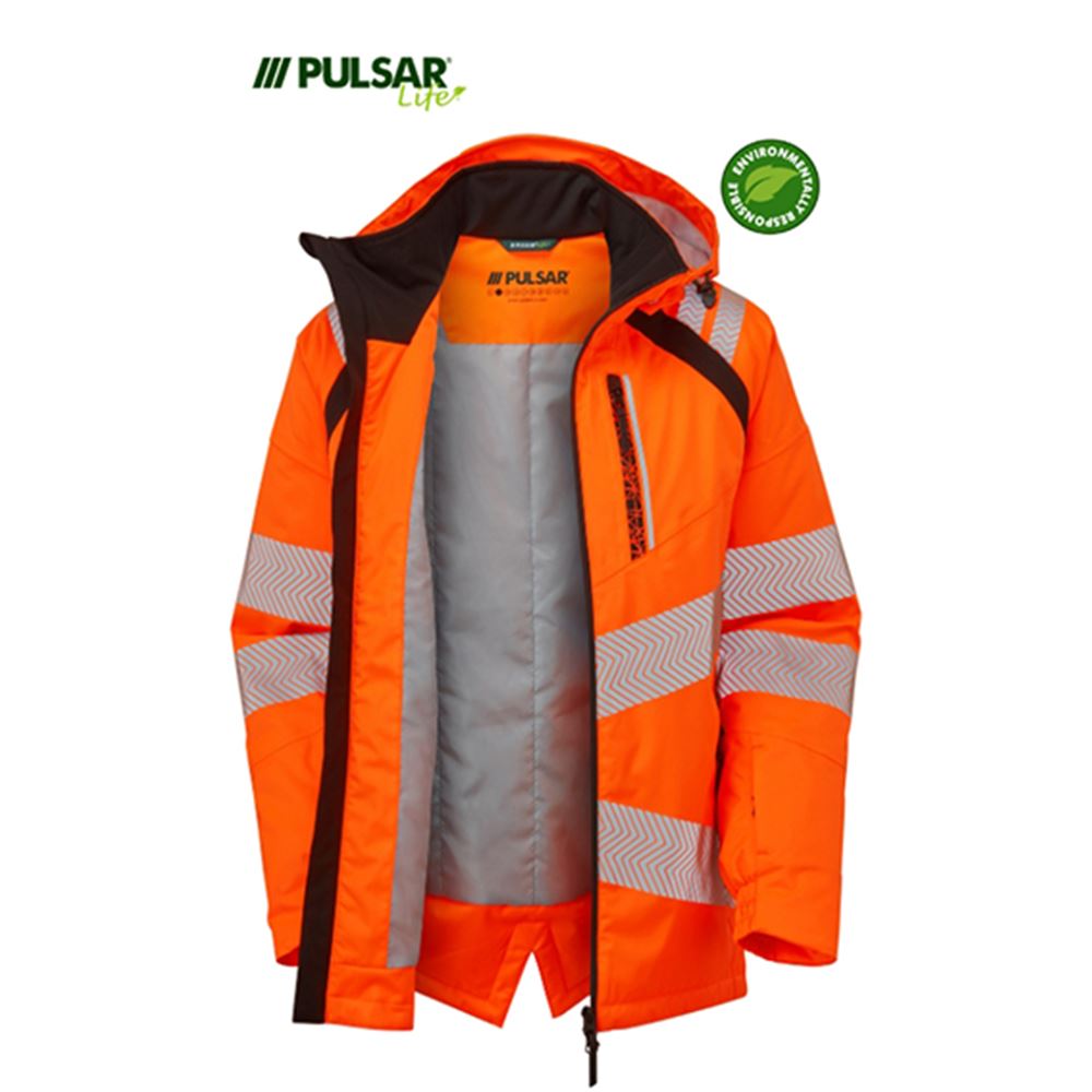 Pulsar Life LFE910 Rail Orange GRS Recycled Waterproof Breathable Hi Vis Shell Jacket