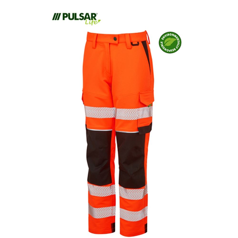Pulsar Life LFE972 Rail Orange Ladies GRS Recycled 4 Way Stretch Hi Vis Combat Trouser