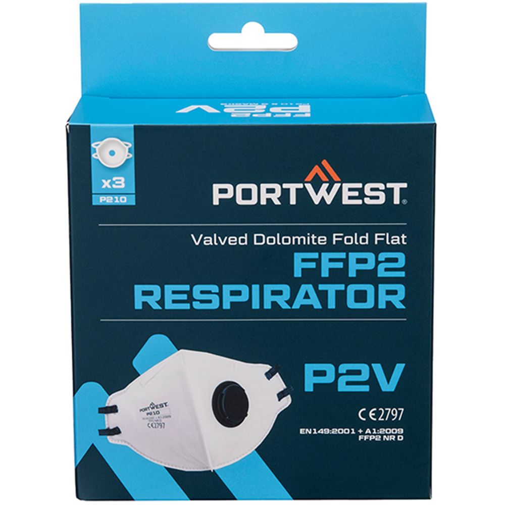 Portwest P210 FFP2 Valved Dolomite Fold Flat Disposable Masks (Pack 3) No stock