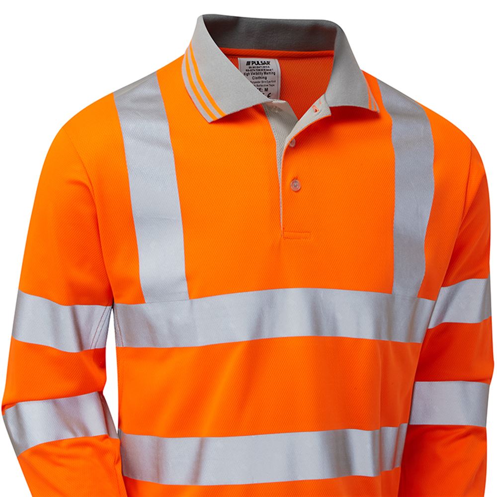 Pulsar PR470-R Rail Orange GRS Recycled Hi Vis Long Sleeve Polo Shirt