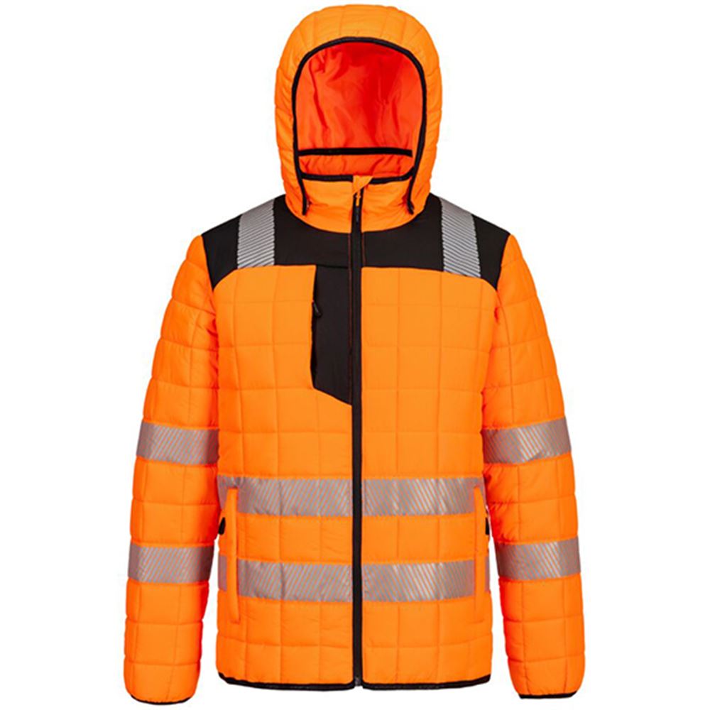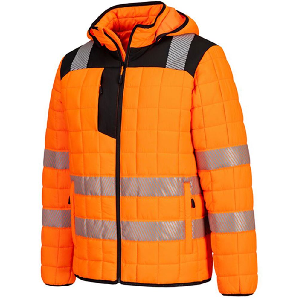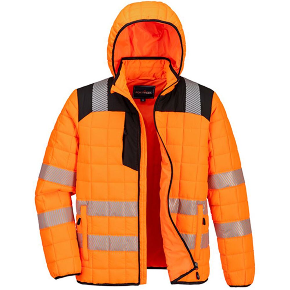 Portwest T165 PW3 Orange Padded Lined Hi Vis Baffle Jacket