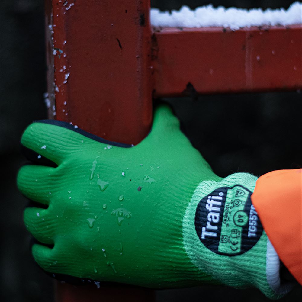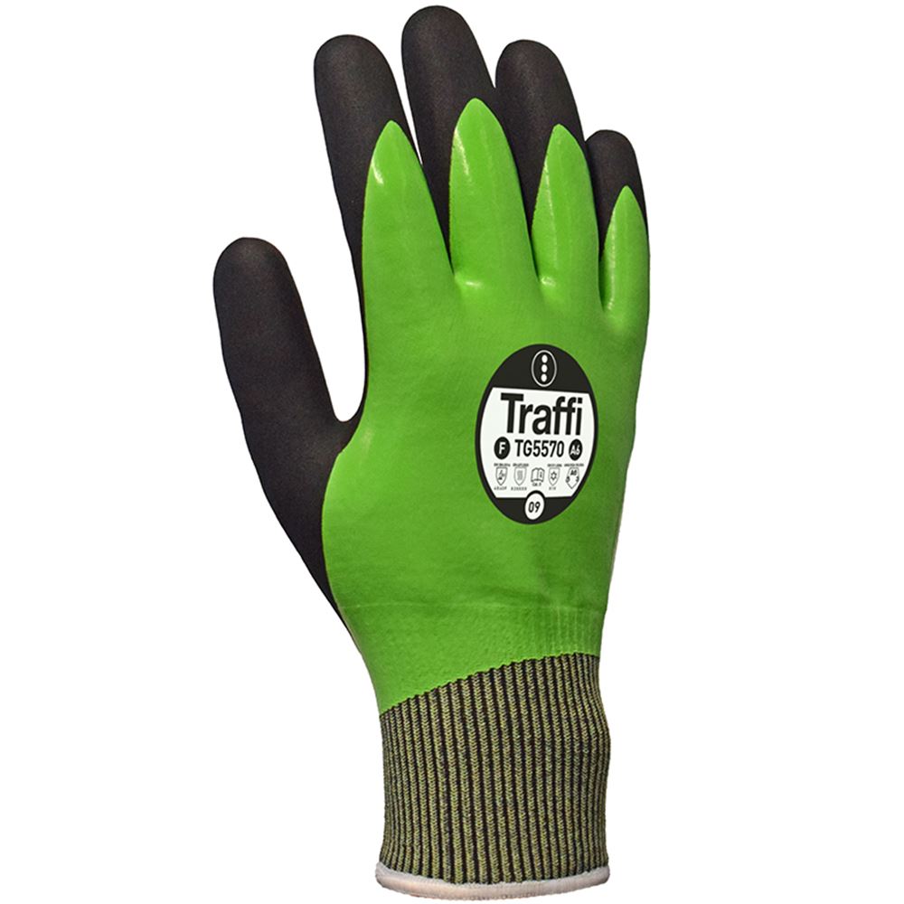 TraffiGlove TG5570 X-DURA Cut F Nitrile/Latex Fully Coated Thermal Water Resistant Green Gloves - 10g