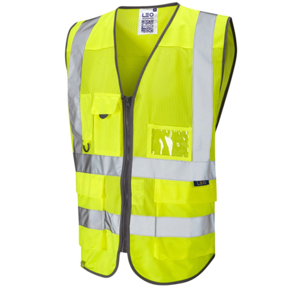 Leo Workwear Cobbaton Yellow EcoViz Coolviz Superior Mesh Hi Vis Vest